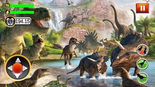 更令人惊叹的是,游戏中的恐龙并非静态的模型,它们会根据你的行为做出反应。比如,当你靠近一只翼龙时,它可能会好奇地飞到你头顶盘旋;而如果你不小心激怒了一只霸王龙,它可能会向你发起攻击。这种互动性让游戏体验更加真实和刺激。